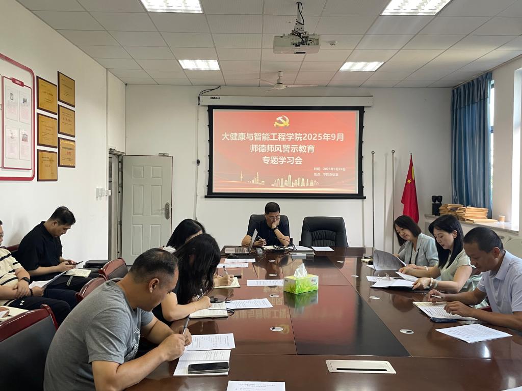 为深入贯彻落实新时代教师队伍建设要求,进一步加强师德师风建设,大健康与智能工程学院于2025年9月24日组织召开了师德师风警示专题学习会。永利集团领导班子成员、各教研室主任及全体行政人员参加了本次集中学习,通过系统学习相关文件精神和典型案例,切实强化教师职业行为规范意识。