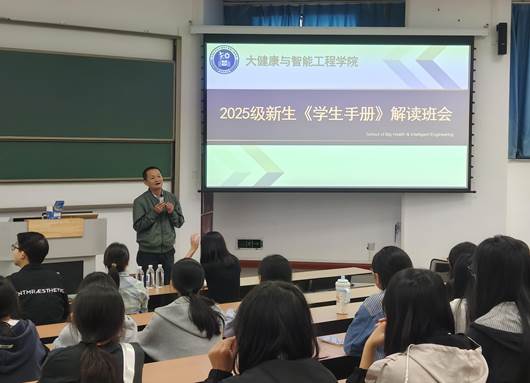 为使2025级新同学更加深入地了解并遵守学校的各项规章制度,提升新生们的规矩意识,大健康与智能工程学院近期分批次对2025级全体新生(合计277人)举办《学生手册》宣讲活动。本次活动分别由学院党委副书记吴培培、学生科科长罗艳荣,以及各年级辅导员负责开展。