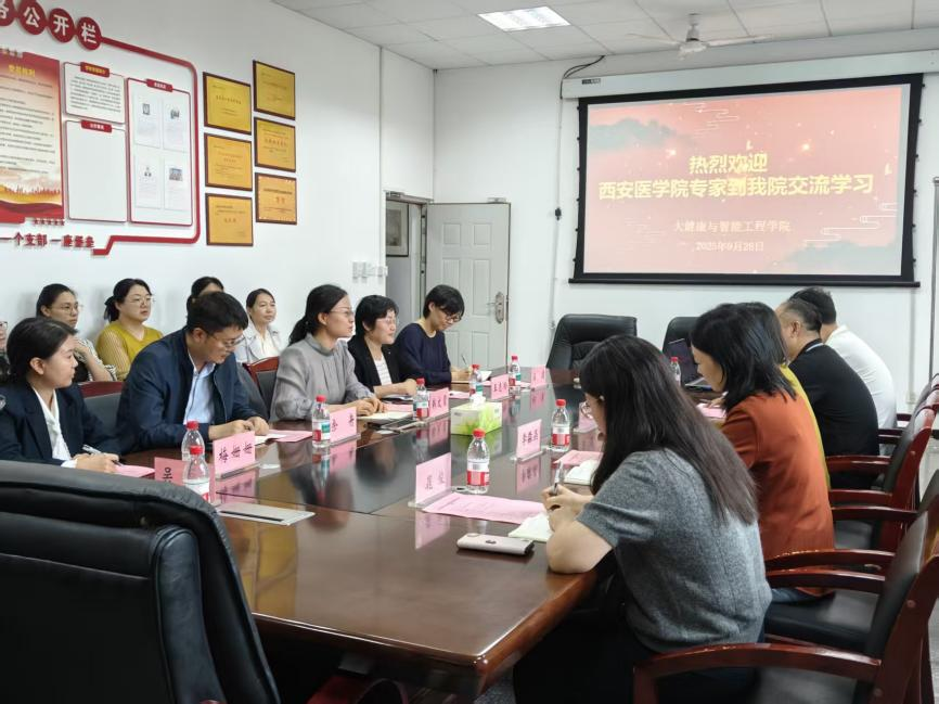 9月28日下午,西安医学院卫生管理学院韩文霞院长一行15人来院交流。大健康与智能工程学院副院长陈煜,健管教研室主任李淼晶,医信教研室主任胡波,实验教学中心主任任伟及相关职能部门、教师代表参加,会议由大健康与智能工程学院副院长陈煜主持。