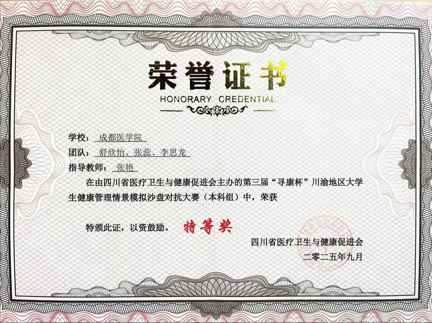 在此次全国高水平比赛现场中,成医学子凭借扎实的专业功底、清晰的逻辑思维和默契的团队配合,在情景模拟推演、方案汇报、沙盘竞技等环节中展现出过硬的实践能力与良好的综合素养,其呈现的健康管理方案兼具专业性与可行性,赢得了评委专家的一致认可,最终脱颖而出,斩获二等奖的优异成绩。